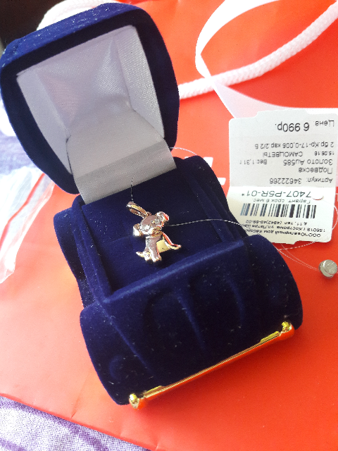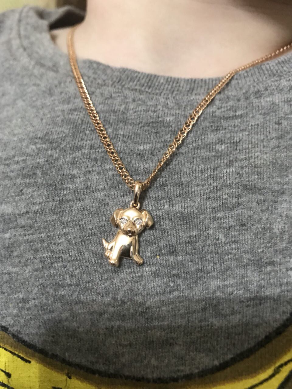 Купила подвеску с очень хорошей скидкой и очень довольна! Собачка для дочки, которая родилась в год Собаки 🐕))Щенок очень симпатичный, аккуратно сделан, глазки- бриллиантики блестят)) Мне очень нравится эта подвеска!!! Ребенок будет носить с удовольствием!!