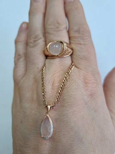 Нежнейшая подвеска с розовым кварцем и бриллиантами прекрасно украшает любую женщину! Взяла в комплекте с серьгами 🫶