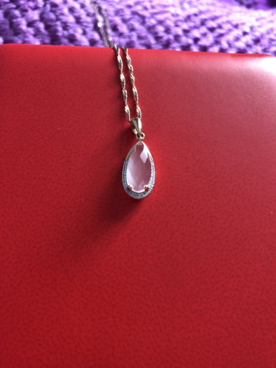 Очень красивая, хорошего размера подвеска с розовым кварцем. Приятно удивил размер камня. Ушко на подвеске вроде не маленькое, но цепочка с плоскими звеньями в процессе носки как-то застревает (поняла, что нужна сингапурка или панцерка). В остальном всё превосходно.