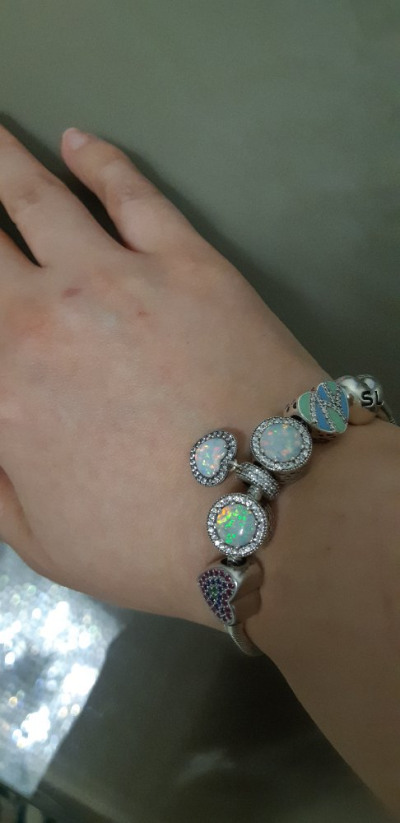 Сердечко нежных оттенков, двустороннее, камешки сияют на солнце. На мои браслетик очень подошел этот шармик.