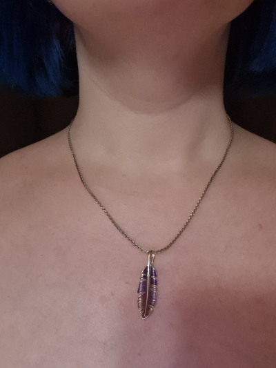 Покупала комплектом с серьгами, яркий кулон, не маленький, крупная петля, пройдёт любая цепочка.