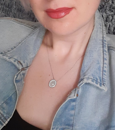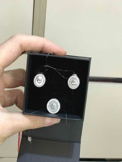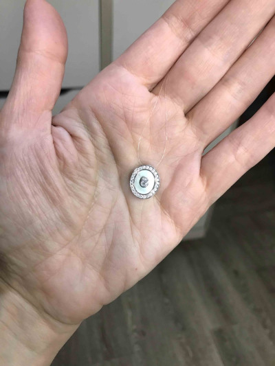 Покупала в надежде на то, что нестандартное крепление позволит мне закрыть темное пятно, которое образовалось на цепочке из-за пайки разрыва. Действительно, украшение можно подвесить на цепочке двумя разными способами, за верхние перемычки и за средние, но во втором случае, хоть оно и закрыло дефект на цепи, но держится неустойчиво, постоянно переворачивается. Так что я немного разочаровано. Но сама по себе подвеска выглядит изящно, необычно и стильно, перламутр, серебро и фианиты даю такой ледяной, зимний эффект.