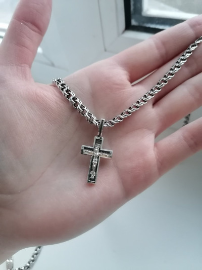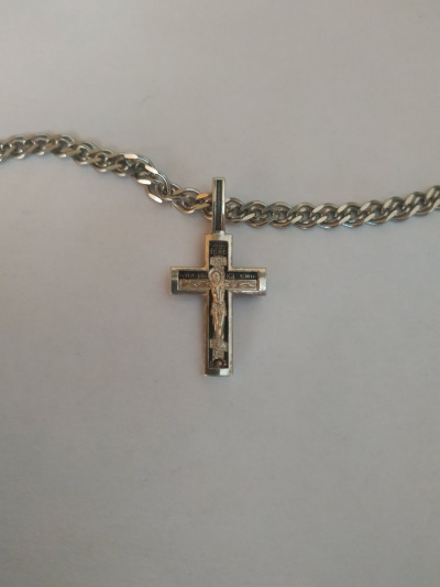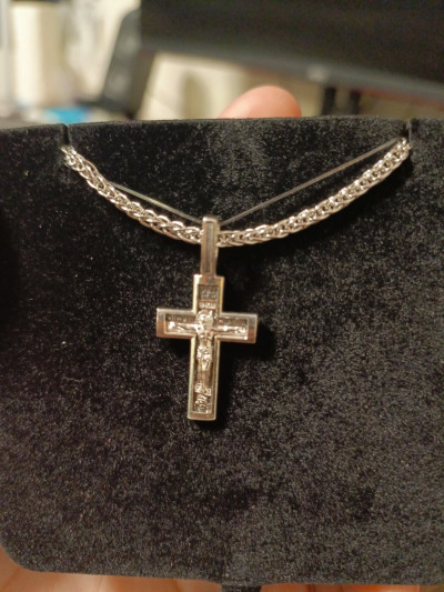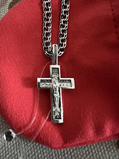 Крестик на цепь 28гр— залез, смотрится хорошо, не горомоздкий На обороте нет надписи "спаси и сохрани", но есть молитва кресту