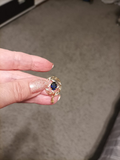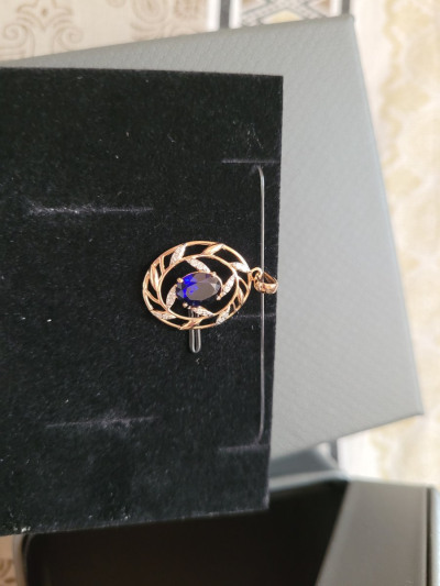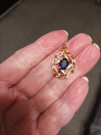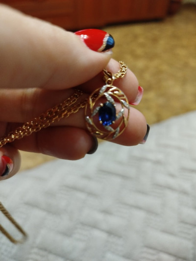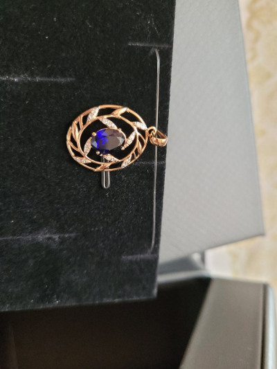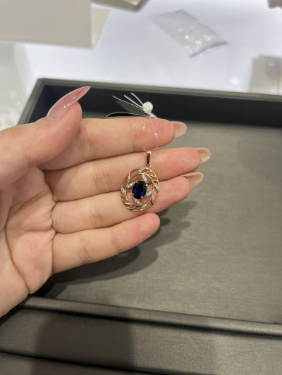 Шикарная подвеска с сапфиром и бриллиантами. Не маленькая. Брала к серьгам и кольцу. Покупкой очень довольна больше спасибо.