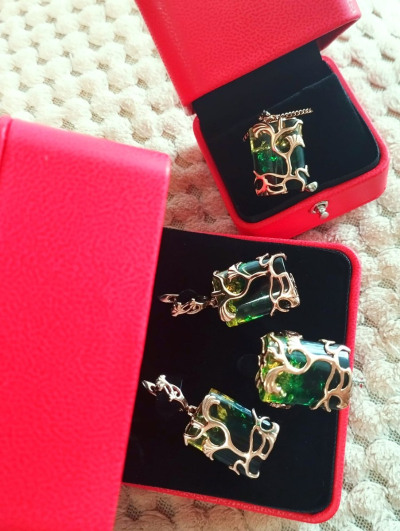 Купила сначала великолепные серьги. Потом увидела кулончик и колечко и поняла, что отказаться не смогу. Кулон великолепен!