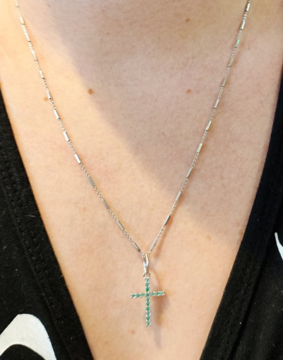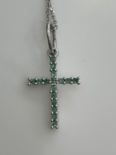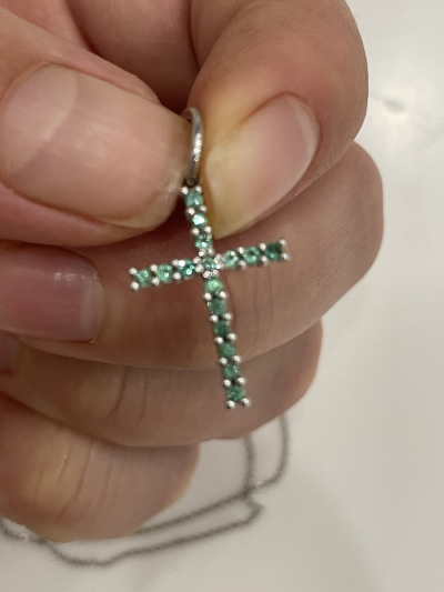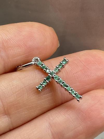 Сам крестик 18 на 14 мм. С ушком 26мм. Изумрудики чистые и прозрачные. На солнышке они просто сияют. А если кому то кажется что они светлые то это потому что они просто маленькие. Меньше чем 2мм. Так что лично для меня они просто прекрасны. 💓😍😊