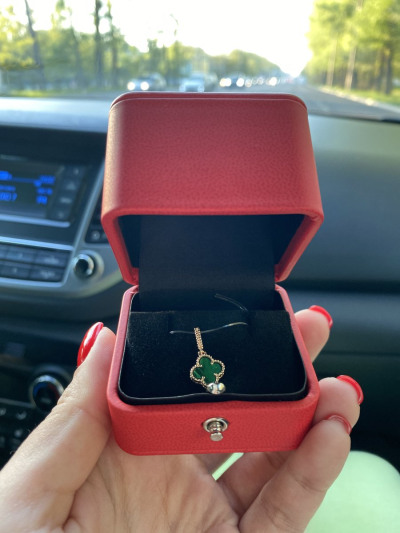 Давно хотела что нибудь с малахитом, а тут любовь любовная. Смотрится красиво на шее. Я в восторге