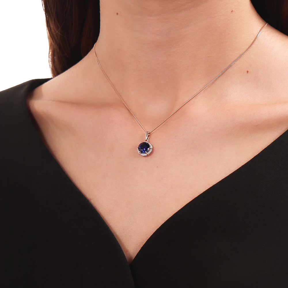 Подвеска с сапфиром и бриллиантами, на груди в солнечном свете яркое и эффективное, красивые переливы