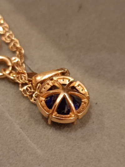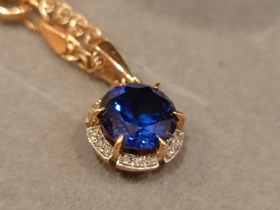 Золотая подвеска с бриллиантами природными и сапфирами выращенными