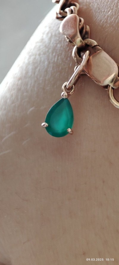 У меня совершенно доугая застежка чем на фото и по отзывам.Наверное поменялся дизайн.Очень гармонично смотрится на цепочке, на браслет думаю не очень подойдет с таким ушком.Милая вещица с натуральеым камнем, покупала к браслету.