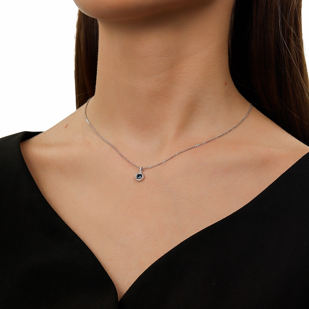 Подвеска из белого золота с природными бриллиантами и топазом, небольшая, аккуратная. Топаз насыщенного цвета, на солнце прерывается вместе с бриллиантами. Очень красиво. Спасибо Санлайт