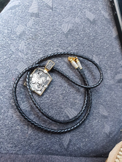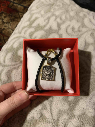 Покупала с большой скидкой мужу в подарок. Подобрали веревочку с серебряным замочком под цвет подвески. Очень круто смотрится!