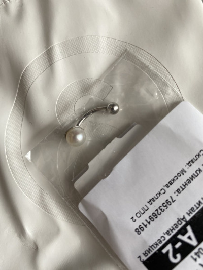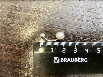 Приятная покупка🤍. Длина штанги идеально мне подошла. Жемчужина белая, красиво переливается. Шарик застежки легко откручивается и закручивается обратно. Пробы не нашла, но вроде как на изделиях до 3 г пробу могут и не ставить. Ношу уже несколько месяцев. Ничего не потемнело. Жемчужина не отваливается. Заказывала онлайн. Привезли быстро и упаковали как всегда шикарно.