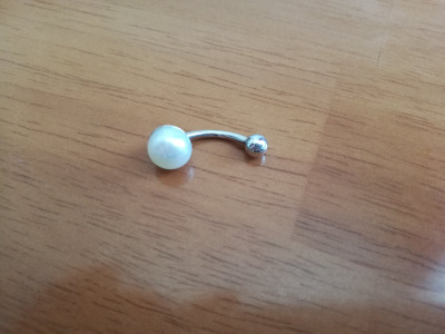 Пирсинг из серебра с жемчугом. Он нежный и смотрится красиво.