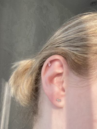 Очень удобная сережка для хряща , не передавливает при сне и не запутываются в неё волосы , я очень довольна.