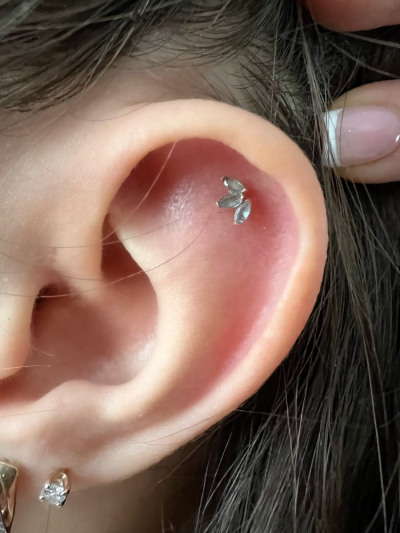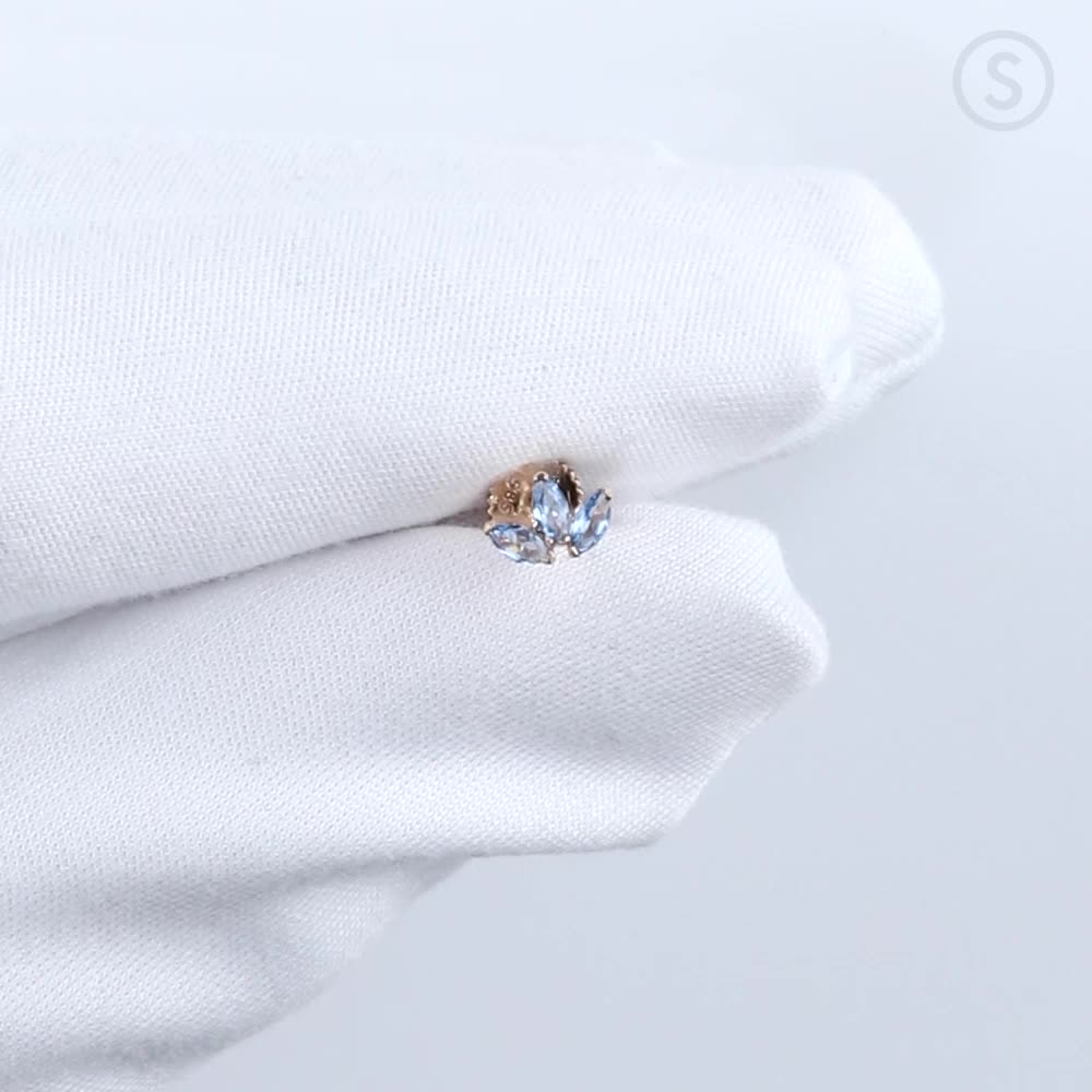 Красивый пинсинг трехлистник с маркизами :) резьба не прокручивается, закручивается до конца, беру для заживших проколов. длина штифта 6мм.