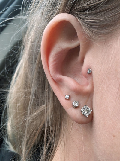 Пирсинг с 3 бриллиантами природными, 0.01 карат, огранка круг 57 граней, цвет 3, чистота 6, тип огранки А;