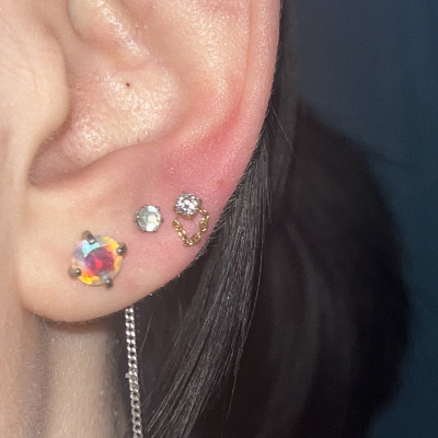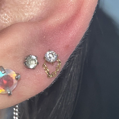 Накрутка прекрасная! Маленькая, но очень красивая. Ушко красное, так как долго пыталась надеть в связи с очень маленьким размером изделия😂 Взяла, радости нет предела!!! Далее буду носить в проколе хряща❤️🩹