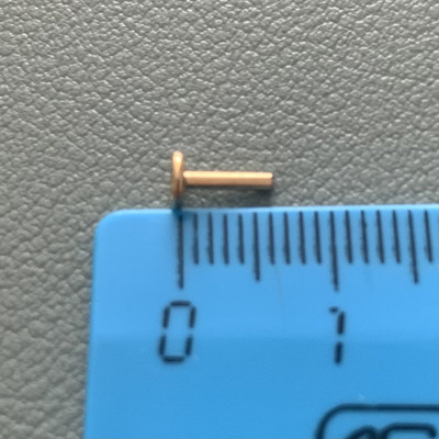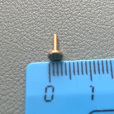 Толщина 1,2 мм, длина 6 мм, внутренняя резьба 0,9 мм.
