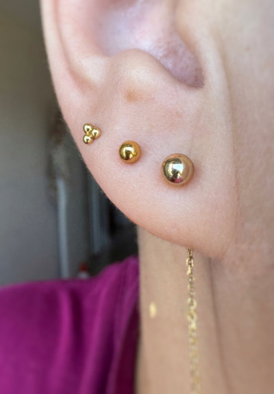 Отличный вариант сережки,классика.Материал совместим с организмом,не вызывает аллергических реакций.Внутренняя резьба надежная. Шарик 3 мм,прекрасно смотрится в проколе хеликс