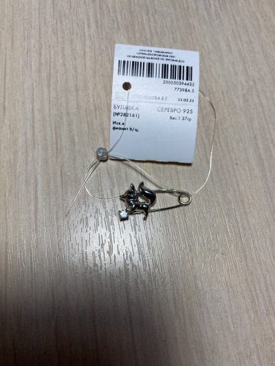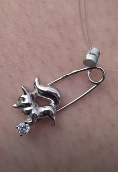 Серебряная булавка с фианитом в форме лисички.Очень красивая и нарядная