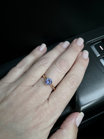 Простое и очень красивое колечко.. тон камешка,при возможности,лучше выбирать..чтоб по душе.. А вообще,я бы все оттенки их собрала)) Всем любителям танзанитом рекомендую!
