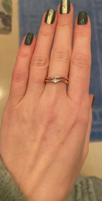 Изумительное кольцо!!! Увидела на сайте, не смогла пройти мимо, очень рада, что забрала это колечко, оставалось в последнем размере и уже не доступно к заказу. Такое нежное, красивый дизайн, бриллиантики маленькие, но сверкают волшебно) Ношу с удовольствием. Спасибо за такую красоту!