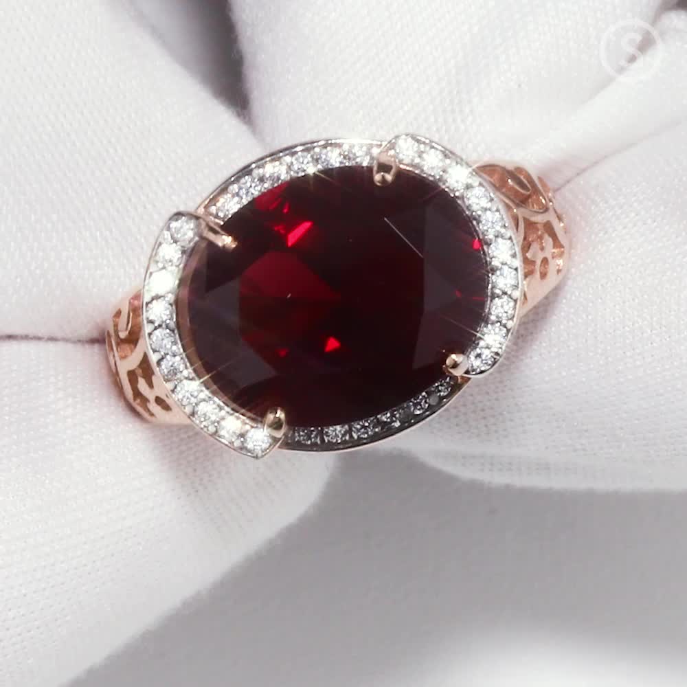 Серебряное кольцо с фианитами, нанокристаллами и гранатами природными