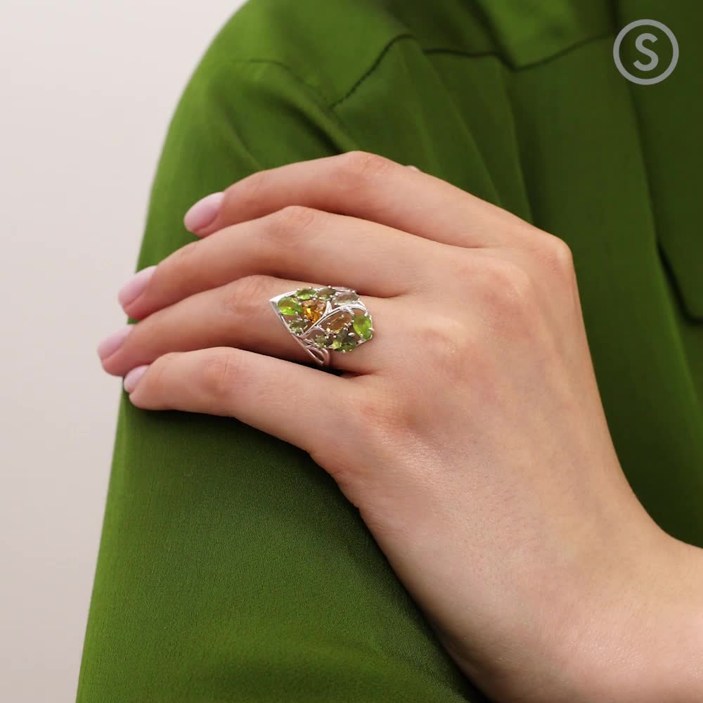Серебряное кольцо с цитринами природными, хризолитами природными и турмалинами природными