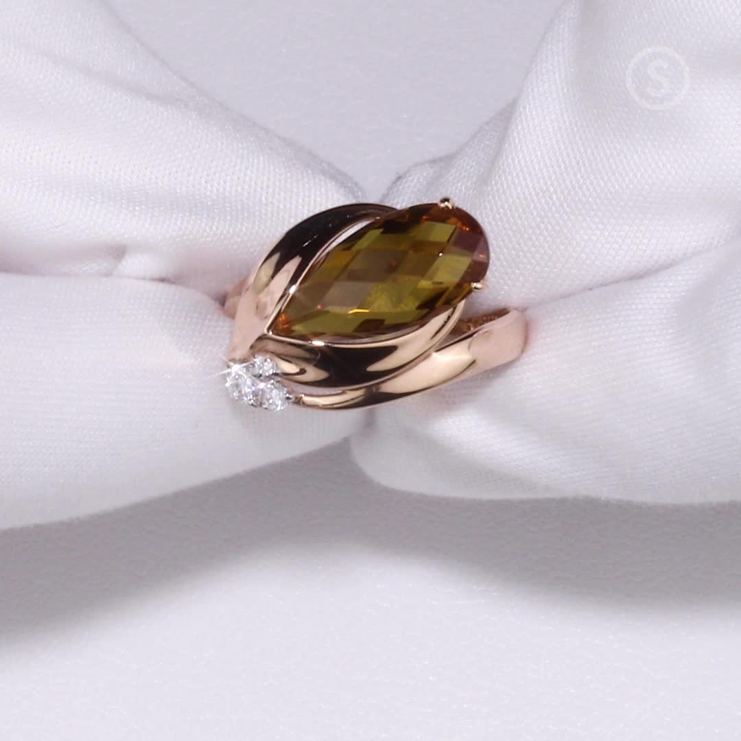 Золотое кольцо с фианитами и султанитами природными