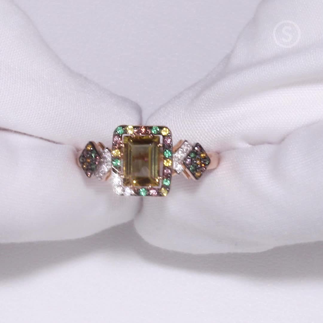 Золотое кольцо с фианитами, цитринами природными, наношпинелями и султанитами природными