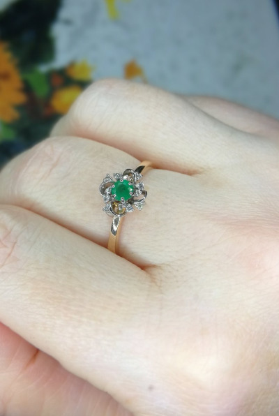 Золотое кольцо с бриллиантами природными и изумрудами природными