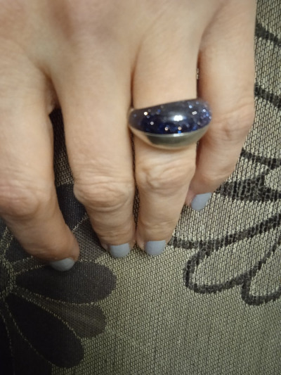 Очень стильное кольцо. Глубокий синий цвет и серебро, беспроигрышный вариант. Смотрится на руке шикарно.