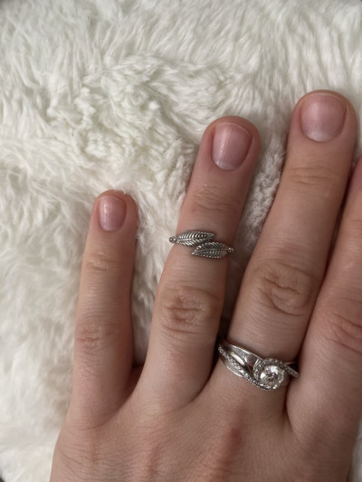 Немного не угадала с размером, но кольцо не смыкается, что позволило немного увеличить его. Покупкой довольна, само кольцо нежное, воздушное и не ощущается в носке