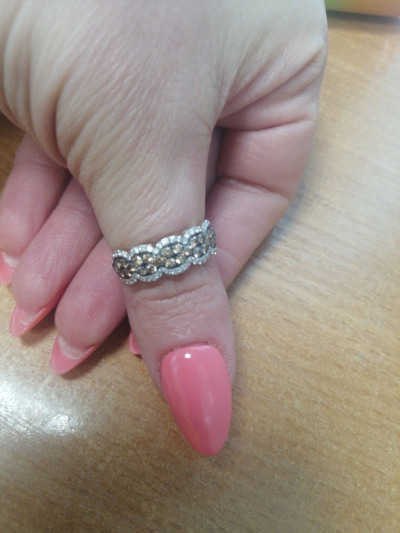 Интересный дизайн кольца, прекрасно смотрится на руке. Очень довольна покупкой!