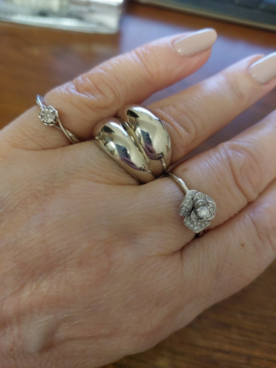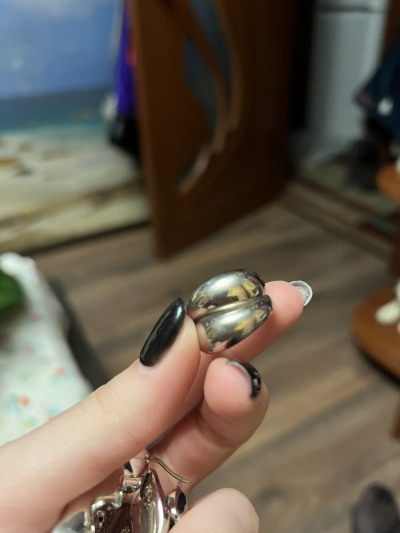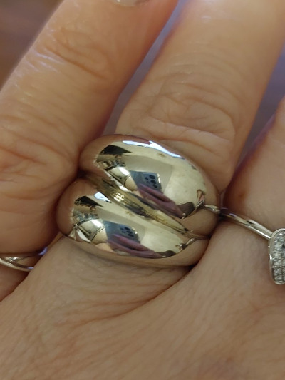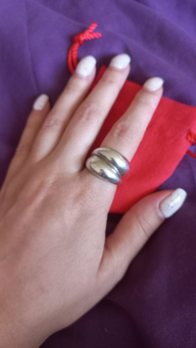 Стильное крупное кольцо, имитация двух надетых колец. Сильно царапается, но это его визуально не портит.