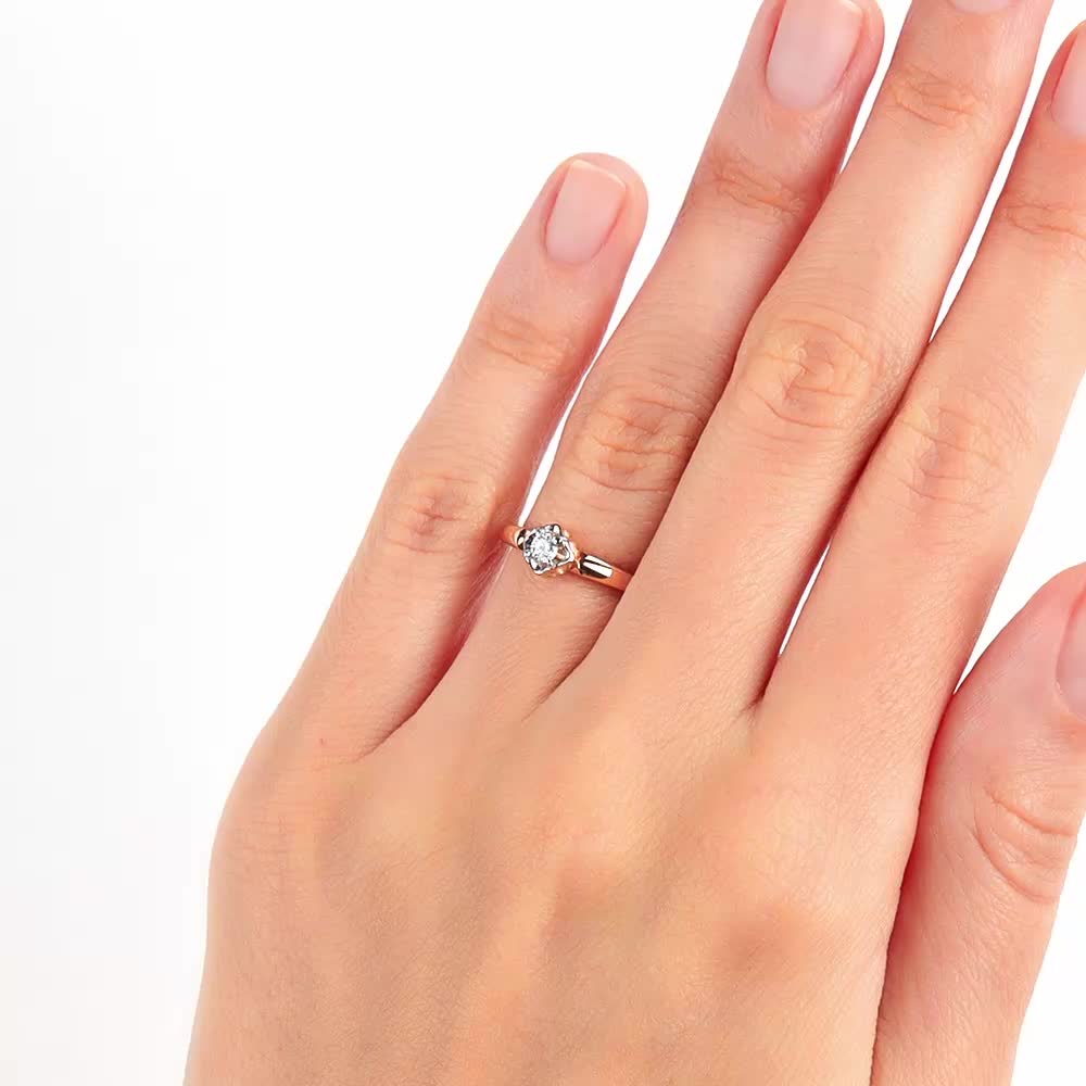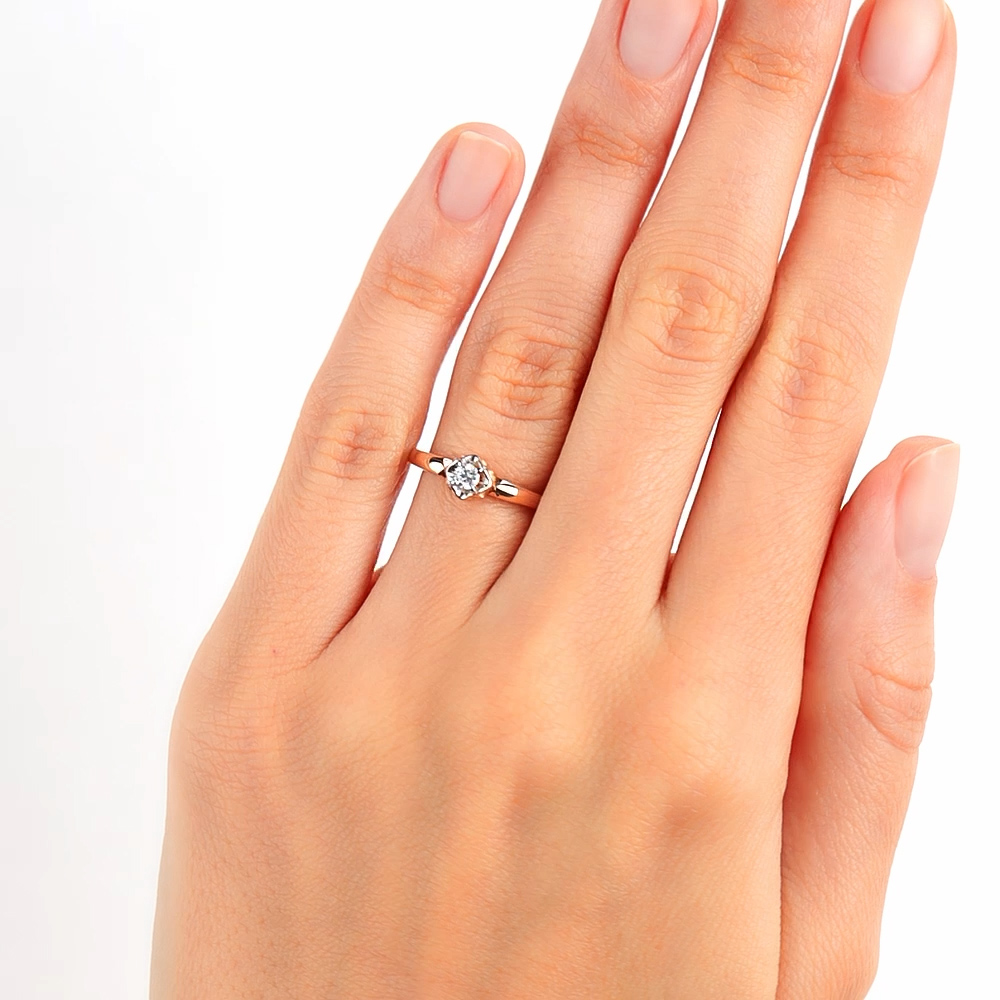 Кольцо «БРИЛЛИАНТЫ ЯКУТИИ» с 1 бриллиантом, 0.083 карат, огранка круг 57 граней, цвет 5, чистота 7, тип огранки А;