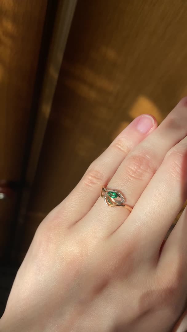 Золотое кольцо с бриллиантами природными и изумрудами природными