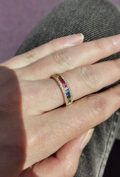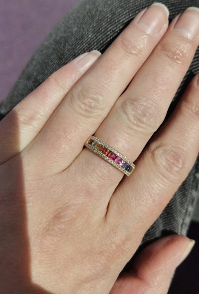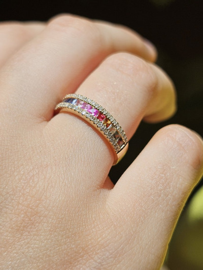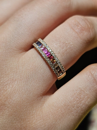 Великолепное колечко, обалденные разноцветные сапфирчики, бриллианты блестят, идёт размер в размер. Подойдёт под любые камни, к любому образу, да и просто поднимает настроение! Очень крутое кольцо!!! Спасибо за скидки и бонусы, без них цена просто пипец🤭