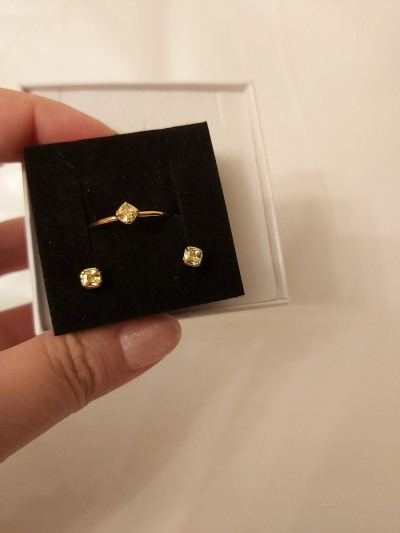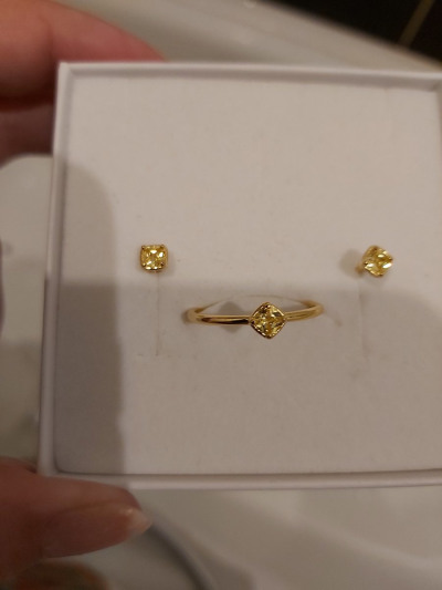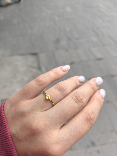 Получила прелестное колечко, цвет под жёлтое золото, выглядит хорошо, есть своя изюминка в виде сердечек на касте. Стойкость покрытия покажет время