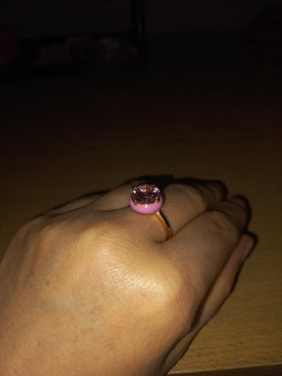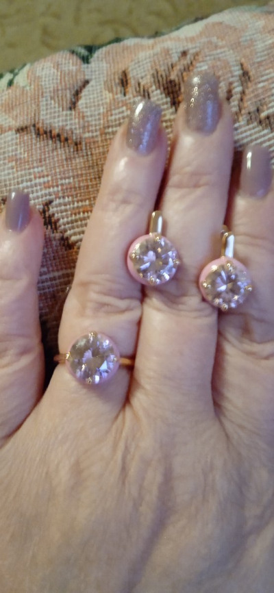 Кольцо купила в комплект к серьгам. Крупный розовый камень, переливается. Очень красивое колечко