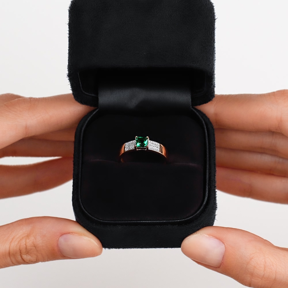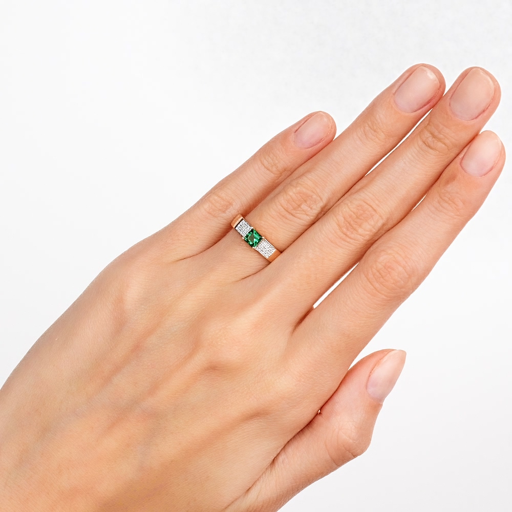 Золотое кольцо с бриллиантами природными и изумрудами выращенными