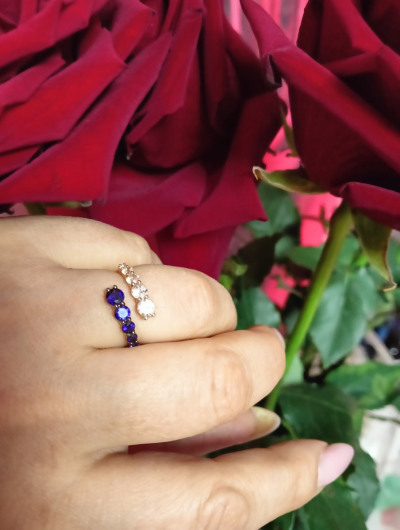Золотое кольцо с топазами природными и сапфирами выращенными
