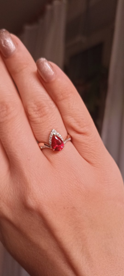 Невероятно красивое кольцо! такое изысканное! покупала комплектом с подвеской. рубин волшебный, смотрится потрясающе! ни одно фото не передает красоты вживую!
