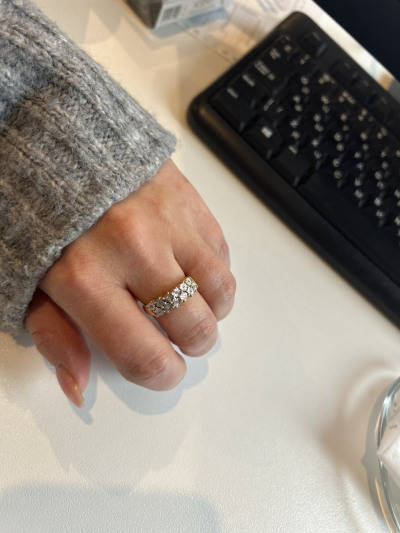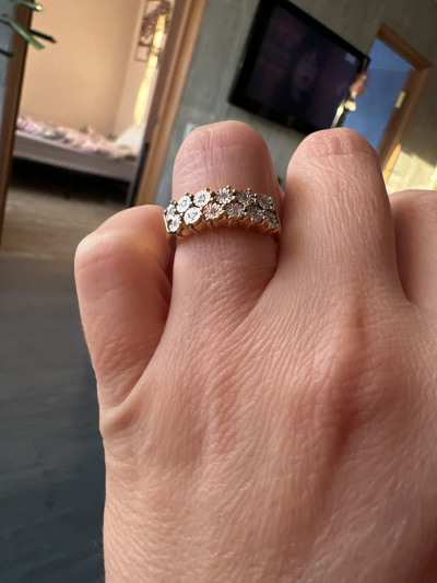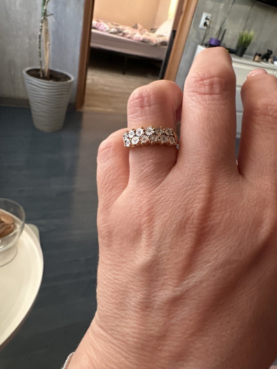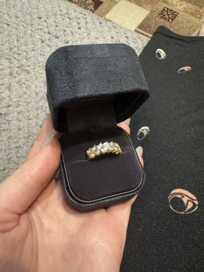 Шикарное колечко с бриллиантами. Хоть это и серебро в позолоте, а выглядит очень дорого как будто золото . У меня есть уже есть такие сережки решила взять еще колечко чтобы получился комплект. Сережки уже ношу втрой месяц даже мочила их позолота хорошо носиться не стирается покрытие . И выглядит супер 🥰 А на солнышке камешки красиво блестят 💖