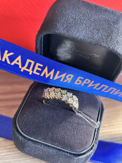 Кольцо с 12 бриллиантами природными, 0.06 карат, огранка круг 17 граней, цвет 2, чистота 4, тип огранки Б;