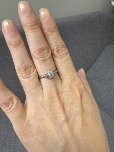 Милое и нежное колечко,размер соответствует.Купила к серьгам .Выглядит нарядно
