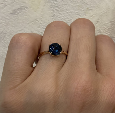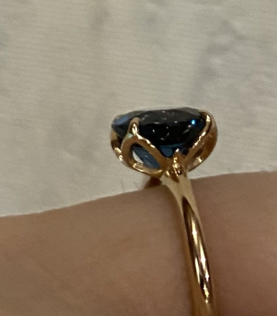 Изумительное кольцо. Когда пришла выкупать и увидела вживую,был полный восторг. Цвет камня потрясающий,глаз не оторвать,синяя глубина океана. Очень красиво смотрится. Камень размером 2.44карата. Однозначно рекомендую,не пожалеете.Спасибо магазину,что даете возможность покупать такую красоту по доступным ценам. Отличная работа девочек консультантов.