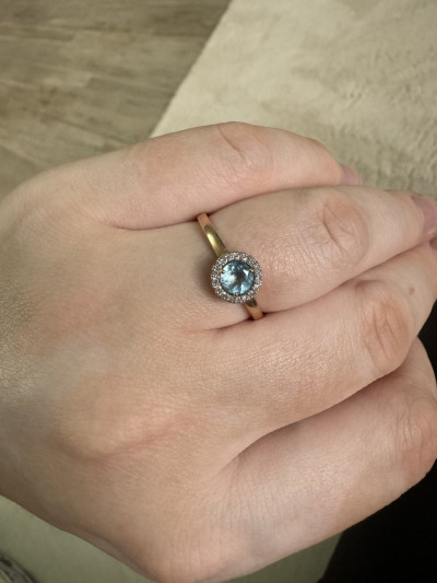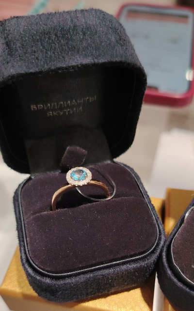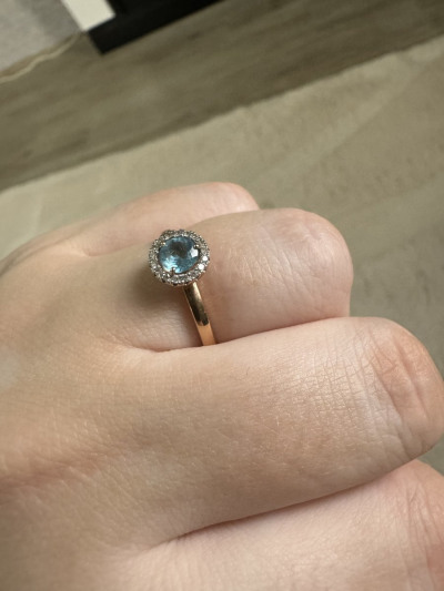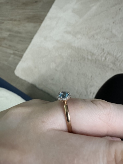 Шикарное кольцо, блестит на солнце очень красиво. В ежедневной носке уже пол года, ничего не выпадает. Единственное, под топазом мутнеет из-за мыла, крема и тп, поэтому чистить нужно чаще, чем обычные изделия, но это даже не особо минус, кому то может и не мешает это)))
