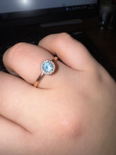 Яркое, искрящееся, заметное кольцо. Камень насыщенного цвета, меняет оттенки в зависимости от освещения, красивый, как маленькое голубое озеро)